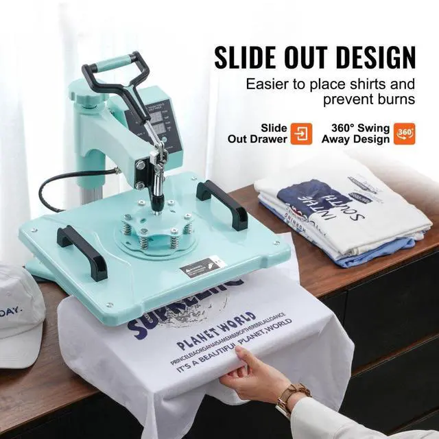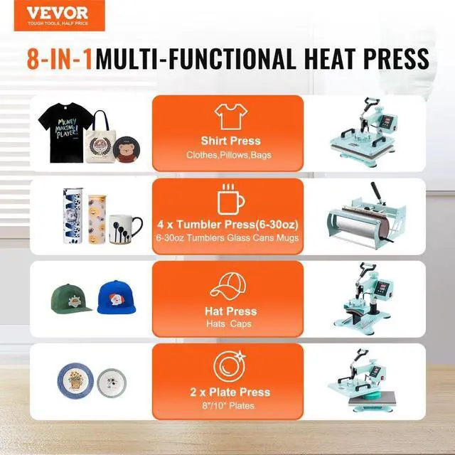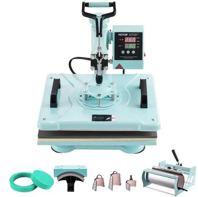 VEVOR Heat Press Machine 12x15 in 8 in 1 with 30oz Tumbler Press T-Shirts Green