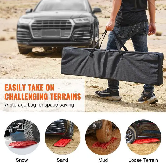 VEVOR 2PCS Traction Boards with PP for Mud Snow Sand Storage Bag Long Red