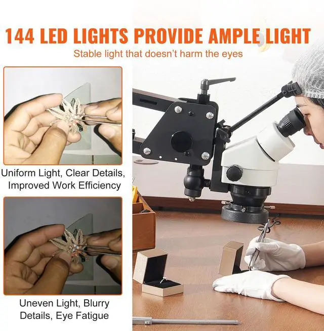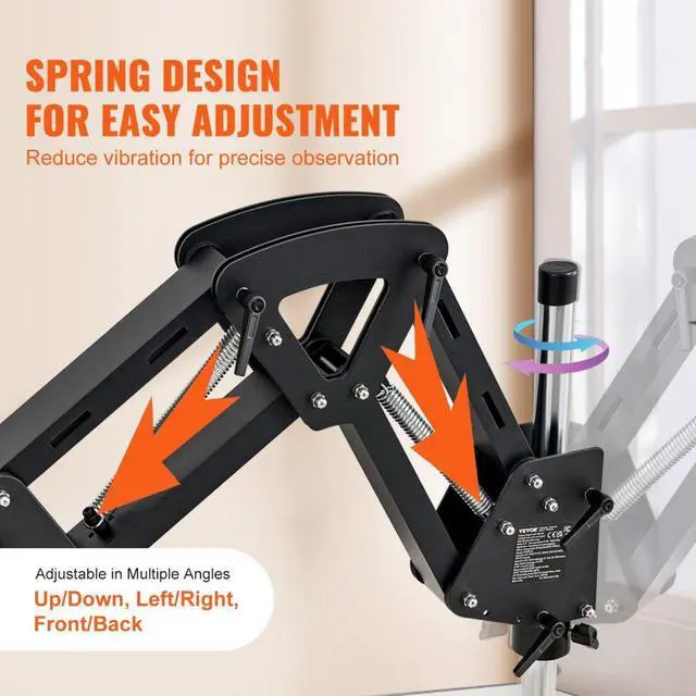 VEVOR Multi-Directional Microscope with Spring Bracket Ring Light 7X-45X Jewelry