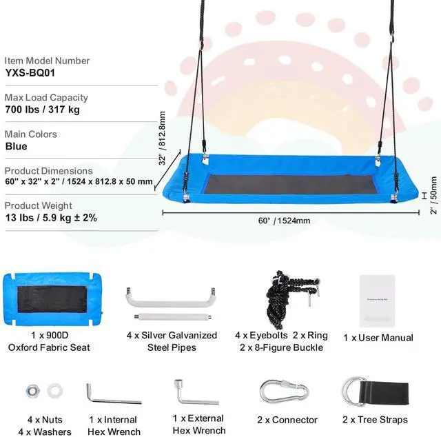 • VEVOR Platform Swing 60 Inch Platform Tree Swing for Kids 700lbs Weight Capacity