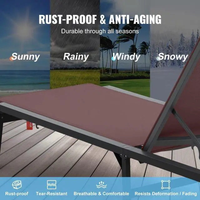 VEVOR Chaise Lounge Chair Outdoor Patio Lounge Chair with Adjustable 5-Position
