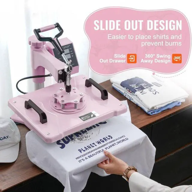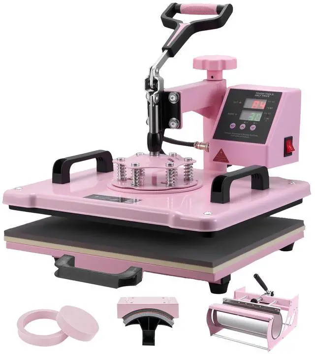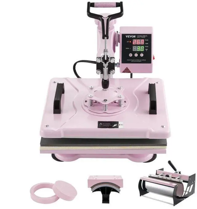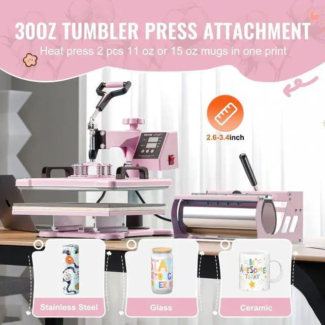 VEVOR Heat Press Machine 12x15 in 5 in 1 with 30oz Tumbler Press T-Shirts Pink