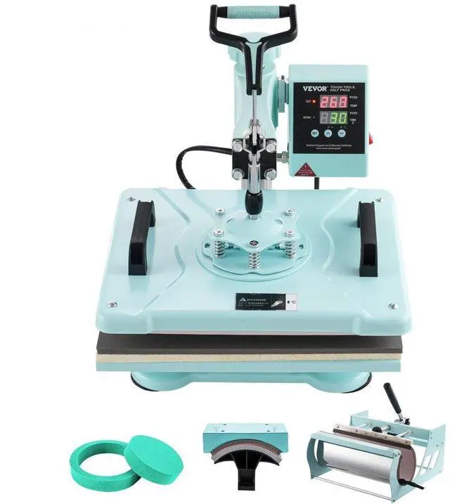 VEVOR Heat Press Machine 12x15 in 5 in 1 with 30oz Tumbler Press T-Shirts Green
