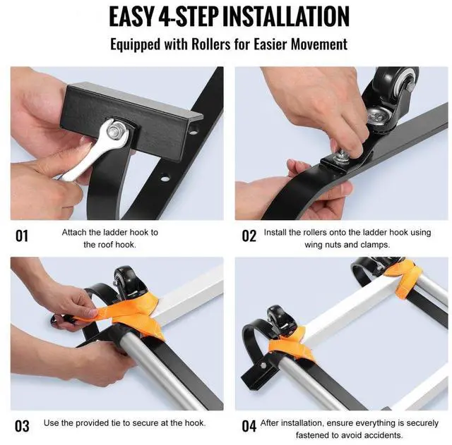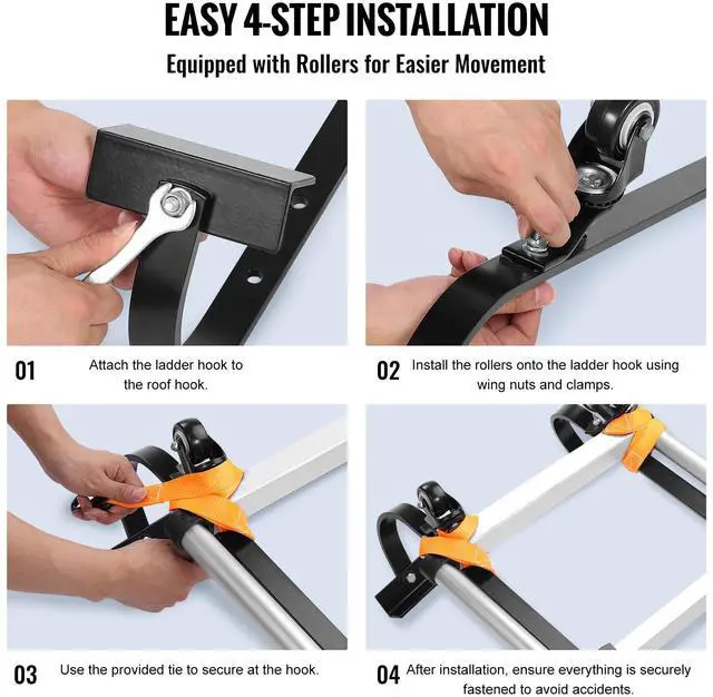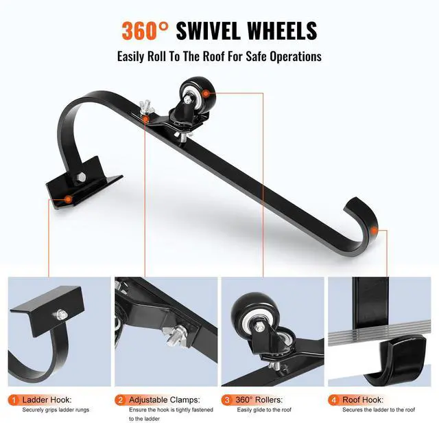 • VEVOR Ladder Roof Hook Stabilizer 2 Pack with Fixed Wheel & Swivel Bar Steel