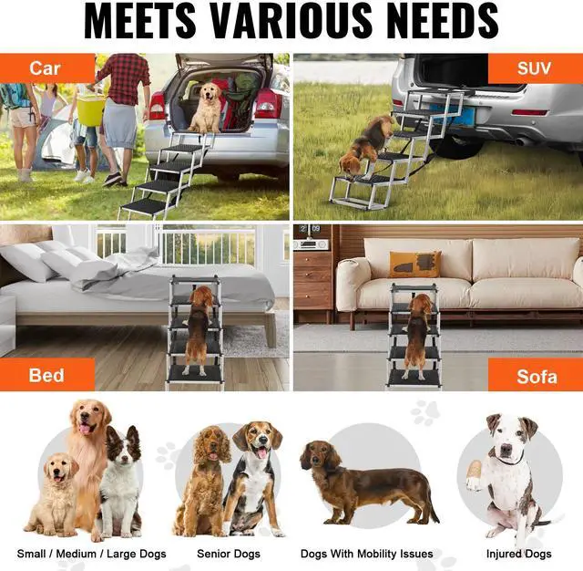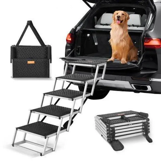 VEVOR Dog Stair for Cars 5-step Folding Dog Steps Aluminum Loads up to 150 lbs