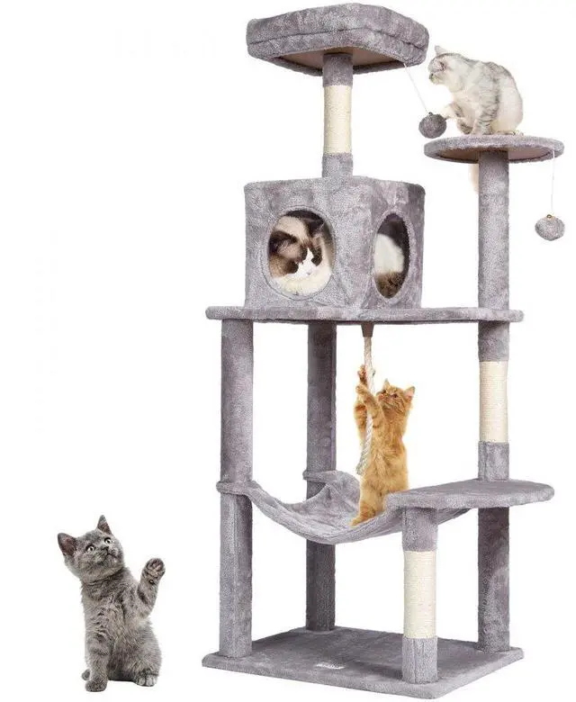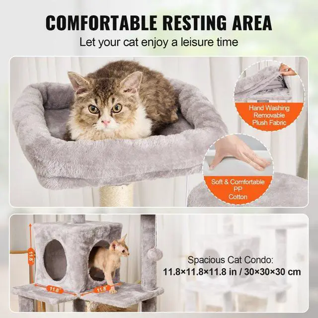 VEVOR Cat Tree 56.2" Cat Tower with Cat Condo Sisal Scratching Post Light Grey