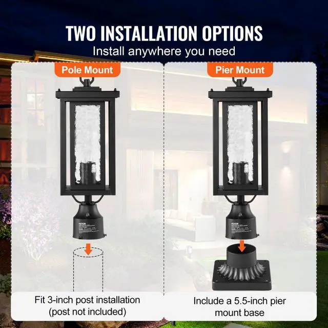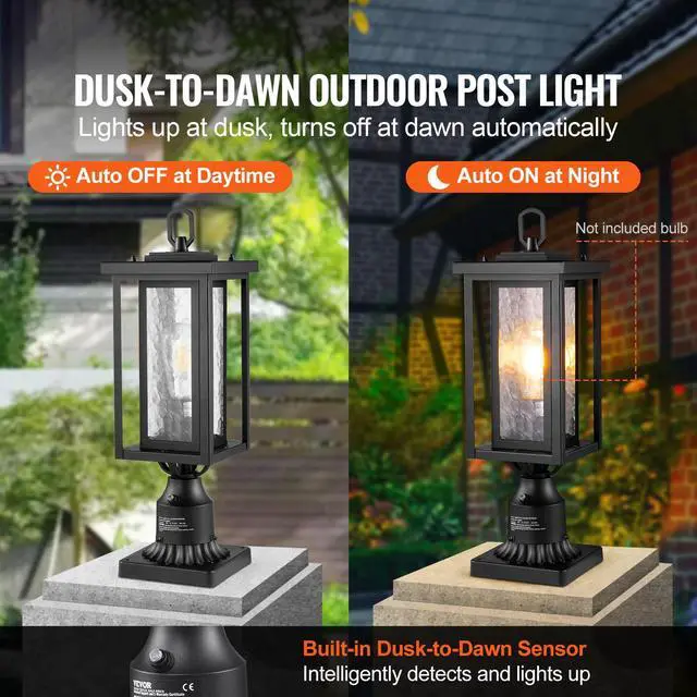 VEVOR 2 PCs Dusk to Dawn Outdoor Lamp Post Light Fixture 17.72in Pole Pier Mount
