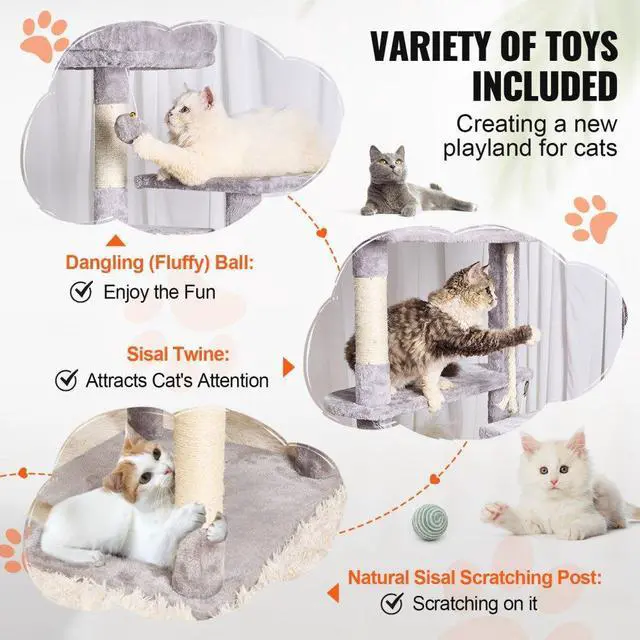 VEVOR Cat Tree 72" Cat Tower with 2 Cat Condos Sisal Scratching Post Light Grey