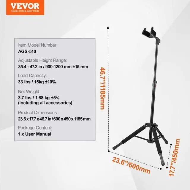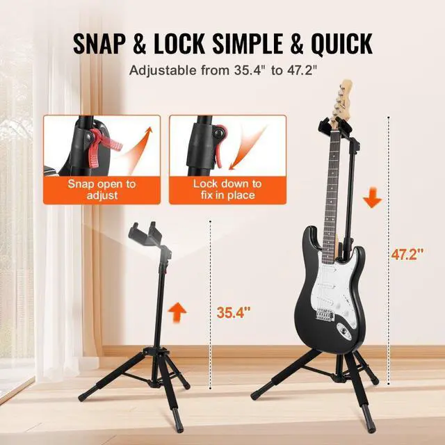 VEVOR Tripod Guitar Stand Floor-Standing Foldable 35.4-47.2 in Adjustable Height