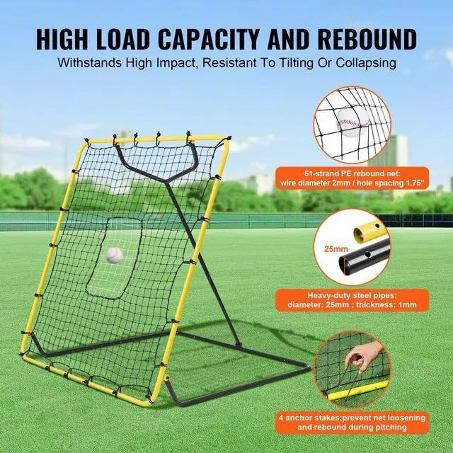 VEVOR Baseball And Softball Rebounder Net 4x4.5 Ft PitchBack Adjustable Angles
