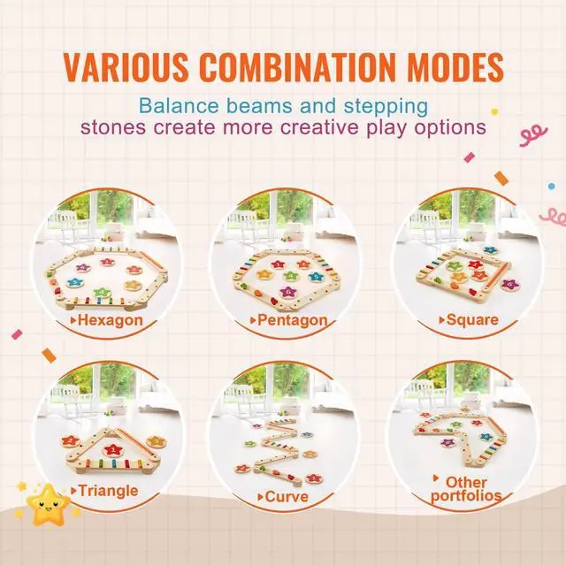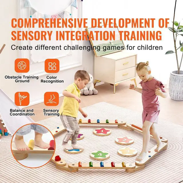 VEVOR Kids Balance Beam Stepping Stones Gym Obstacle Children Balance Board 6PCS
