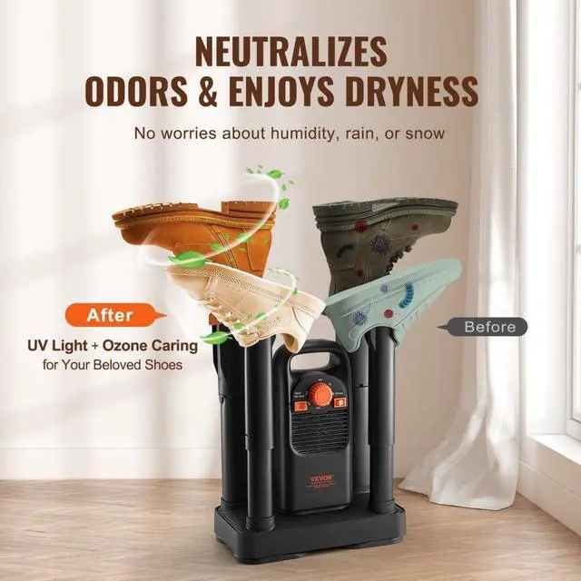 VEVOR Detachable 4-Tube Shoe Dryer with Timer and Quick Drying Black & Orange,Ultra Silent, Quick Drying for Work Boots, Ski Boots, Sneakers, Gloves, Hats, Helmets