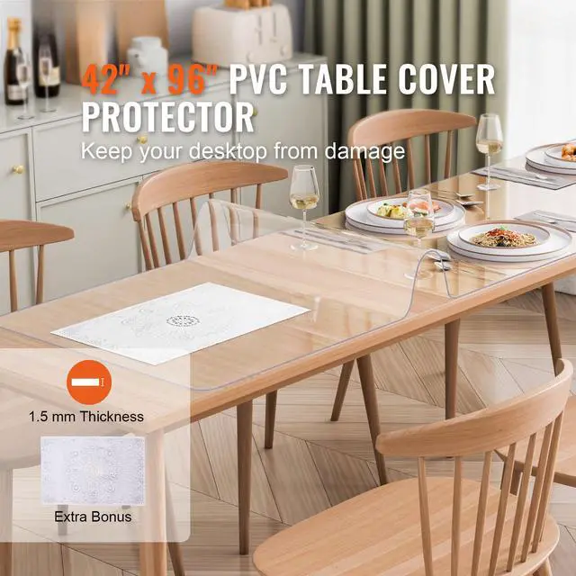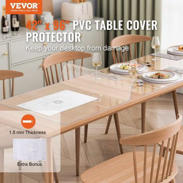 VEVOR PVC Table Protector 42x96 Inch Clear Plastic Desk Protector 1.5mm Thick