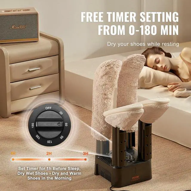 VEVOR Detachable 4 Tubes Shoe Dryer with Heat Blower & Timer Black & Orange,Ultra Silent, Quick Drying for Work Boots, Ski Boots, Sneakers, Gloves, Hats, Helmets