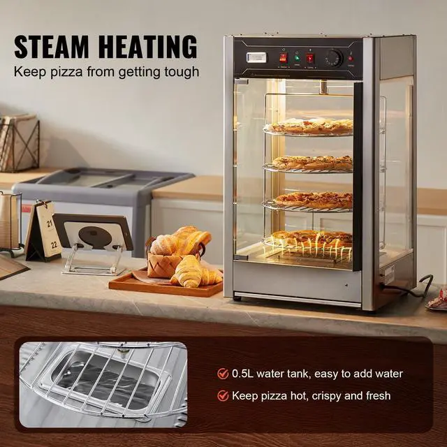 VEVOR Food Warmer Display for 14" Pizza, 4-Tier Commercial Pizza Warmer Electric
