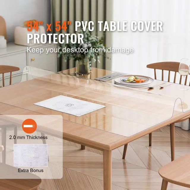VEVOR PVC Table Protector 54x54 Inch Clear Plastic Desk Protector 2.0mm Thick