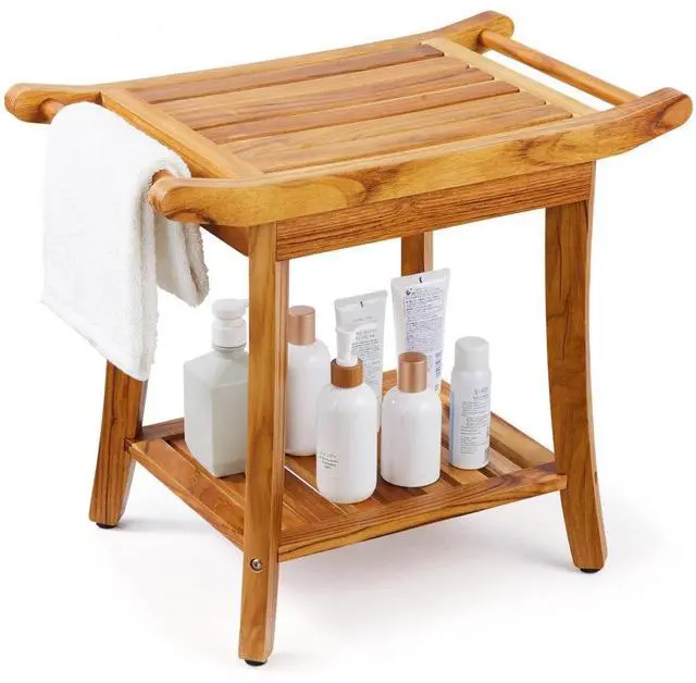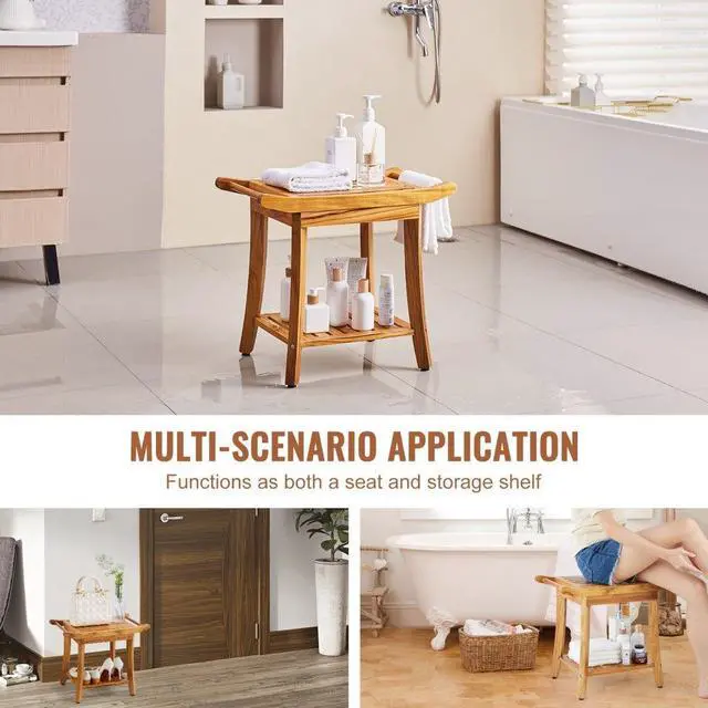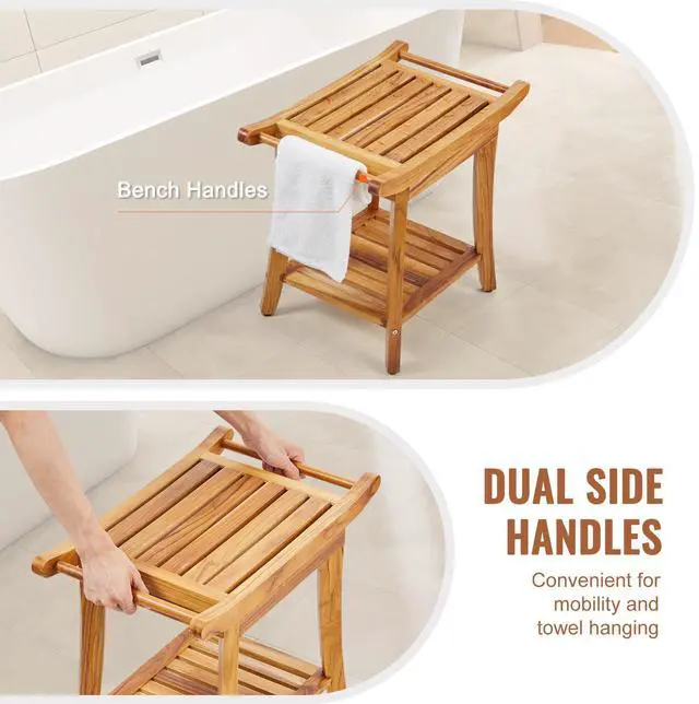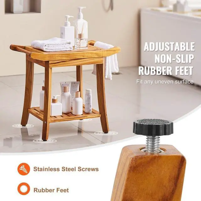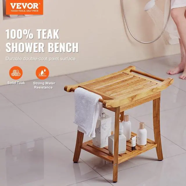 VEVOR Teak Shower Bench 22 x 14.4 x 18.5 in Wood Shower Stool Chair for Bathroom