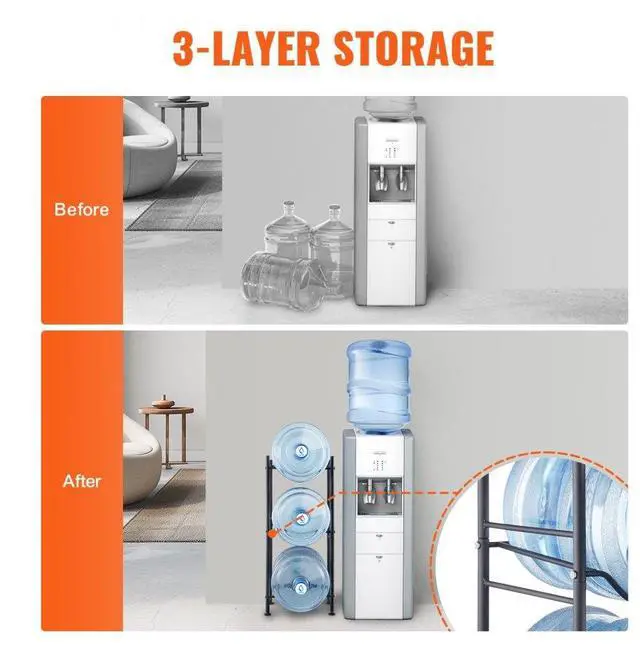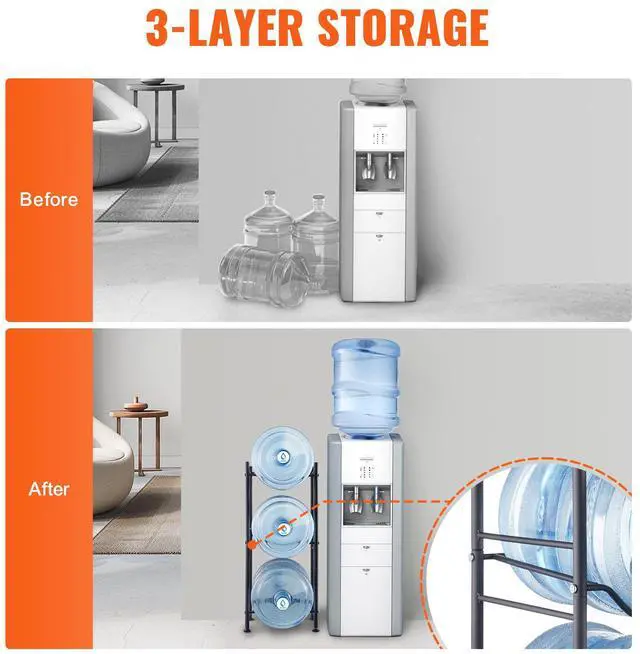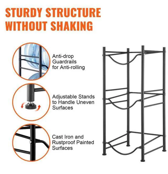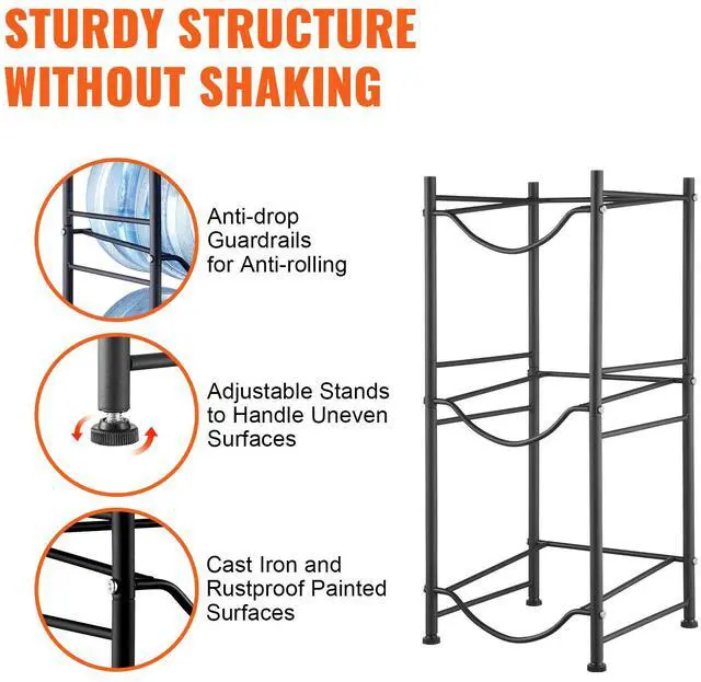 • VEVOR 3 Tiers Water Jug Holder Single Row Water Bottle Rack for 3 Bottles Black