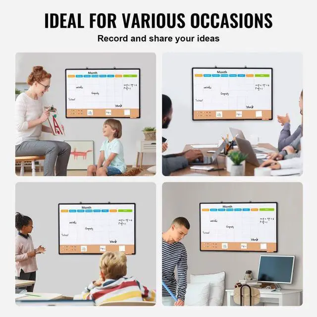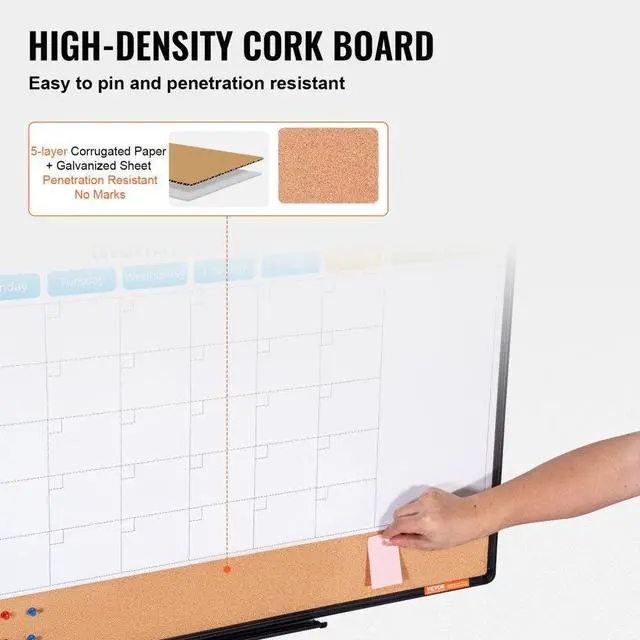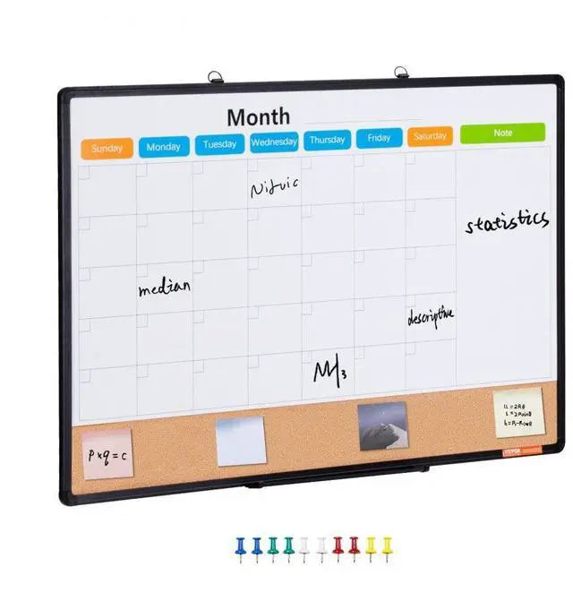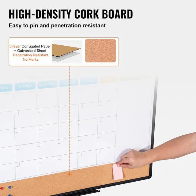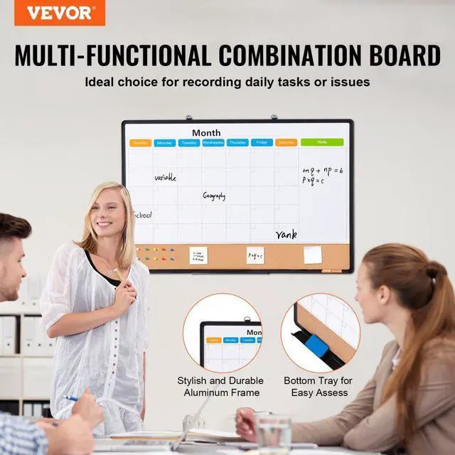 VEVOR 36"x 24" Monthly Calendar Whiteboard & Cork Board Combo with Aluminum Frame Bulletin Board