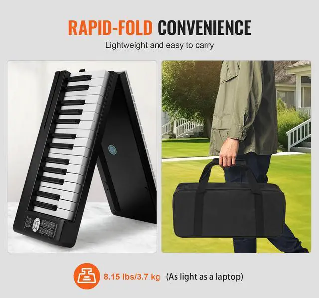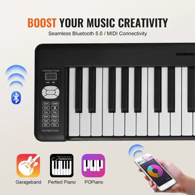 VEVOR 61 Key Folding Keyboard Piano Portable Foldable Piano Bluetooth MIDI Black