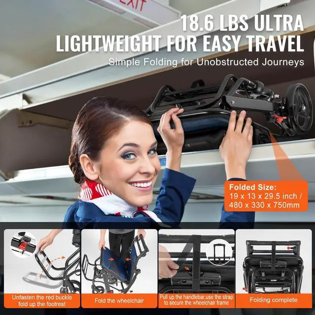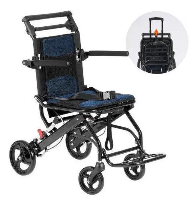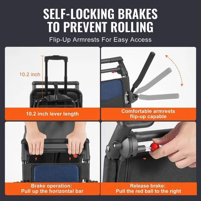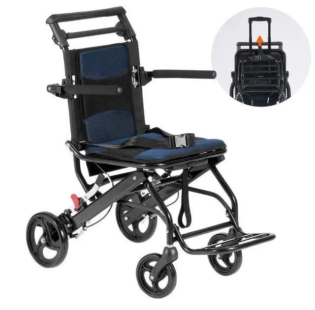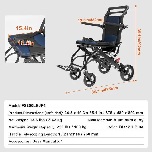 VEVOR Wheelchair Aluminum Alloy Transport Chair Foldable 15.75-In W Seat 220lbs