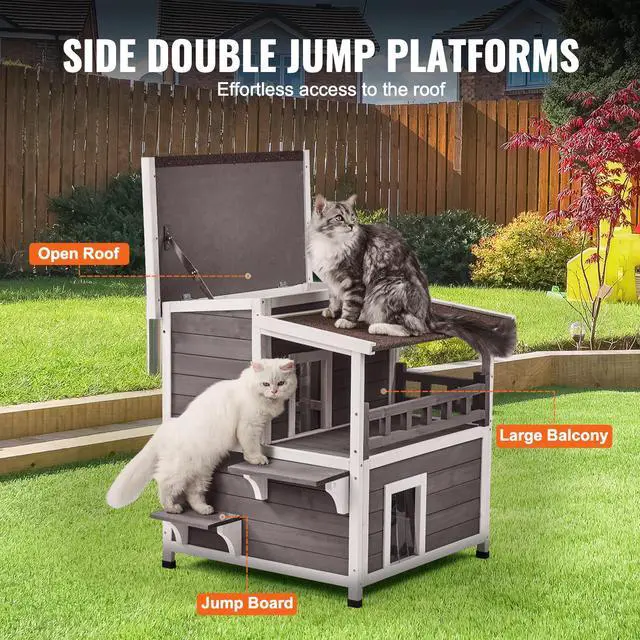VEVOR Outdoor Cat House 2-story Wooden Feral Cat Shelter with Balcony & Roof