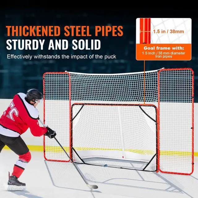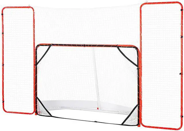 User-Friendly Design: The indoor outdoor hockey goal features side barrier nets that help with long-distance hockey shot practice, reducing the need to fetch the puck. It also protects your outdoor space from pucks rebounding around neighbors or the garage, providing excellent protection for garage doors.