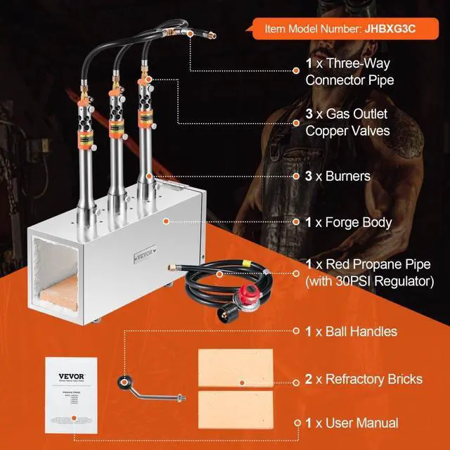 VEVOR Portable Propane Forge 3 Burner Farrier Forge 2600 Knife Metal Square