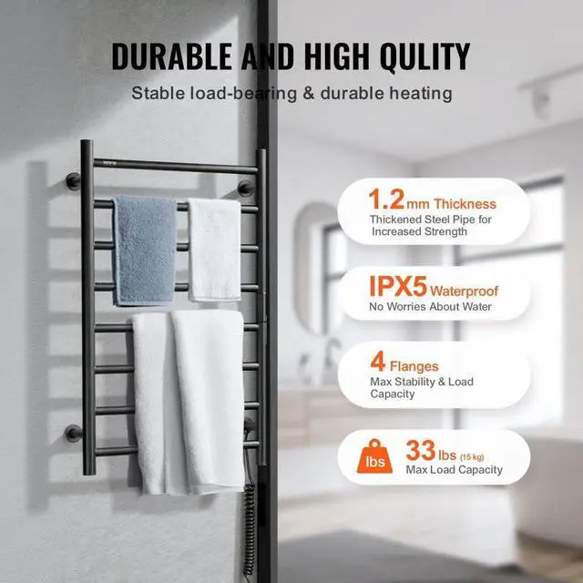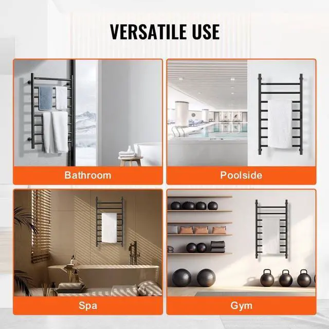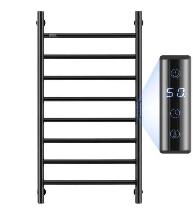 VEVOR 8 Bars Towel Warmer Rack Wall Mounted Heated Towel Rack for Bathroom Black
