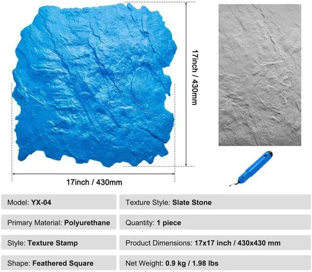 Primary Material: Polyurethane,Shape: Feathered Square,Item Model Number: YX-04,Texture Style: Slate Stone,Style: Texture Roller,Quantity: 1 piece,Product Dimensions: 16.93x16.93 inch / 430x430 mm,Net Weight: 0.9 kg / 1.98 lbs