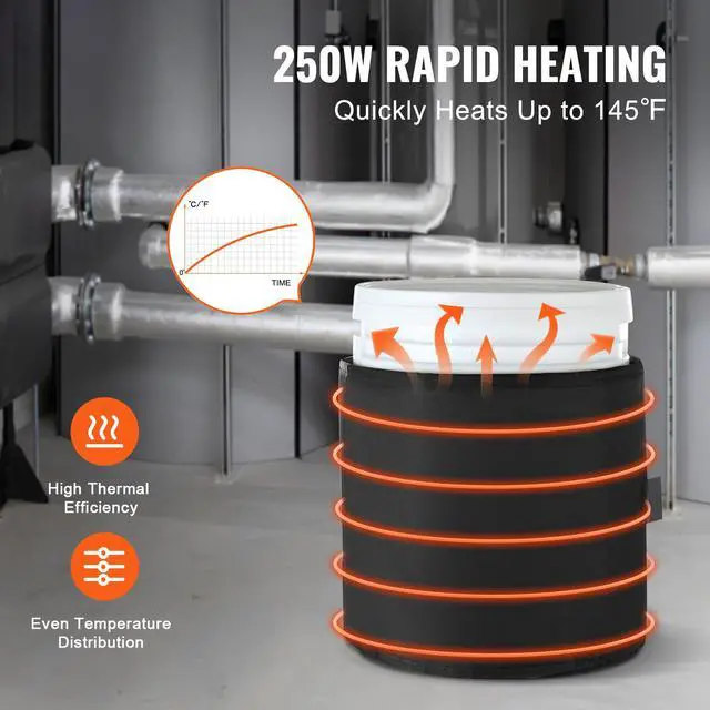 VEVOR 5 Gal Metal Drum Heater 250W 0-145 Adjustable w/ Independent Thermostat