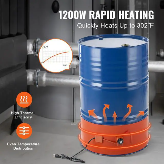 VEVOR 55 Gallon Metal Drum Heater 1200 Watt 10 inch Width, 86-302 Adjustable