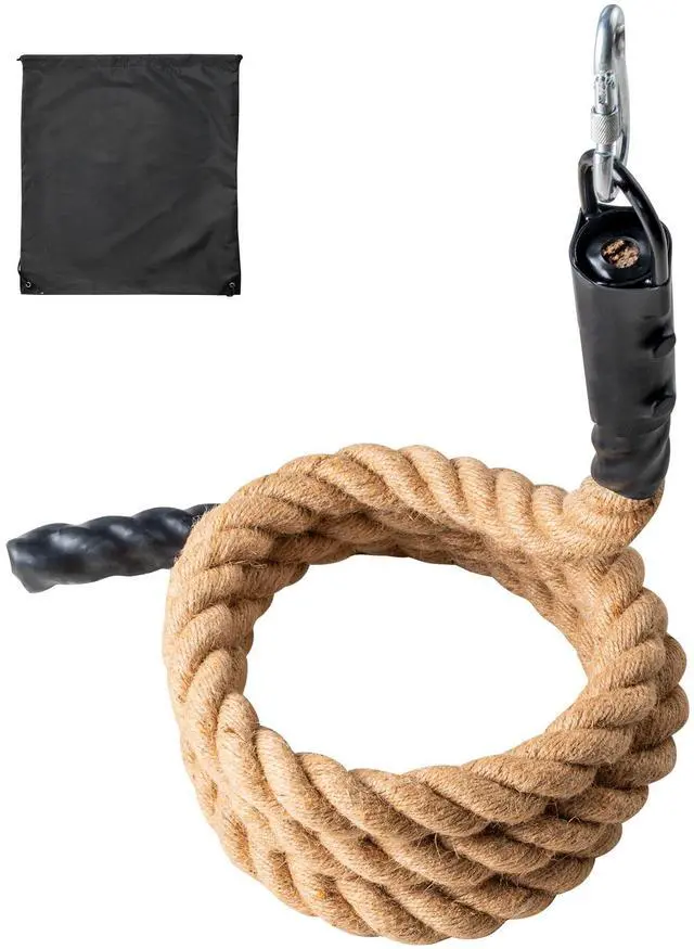 Abrasion Resistance and High Tensile Strength: Constructed from premium heavy-duty hemp rope material with a diameter up to 1.5 inch, this gym climbing rope offers strong tensile strength and abrasion resistance, capable of bearing significant weight and tension. It has undergone a 15,000N tensile strength test and supports a maximum weight of 500 pounds. It's recommended for indoor use in dry environments, avoiding moisture and water contact.