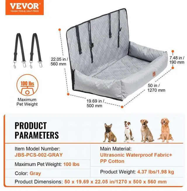 Color: Gray,Item Model Number: JBS-PCS-002-GRAY,Maximum Pet Weight: 100 lbs,Product Dimensions: 50"x19.69"x22.05"/1270x500x560 mm,Net Weight: 4.37 lbs/1.98 kg,Main Material: Ultrasonic Waterproof Fabric+PP Cotton
