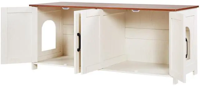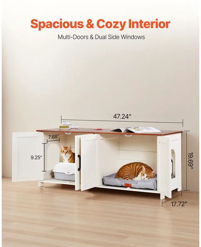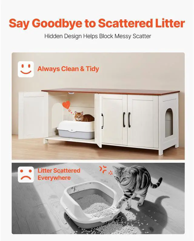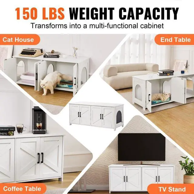 VEVOR Cat Litter Box Enclosure Wooden Litter Box Furniture Hidden 2 Rooms White