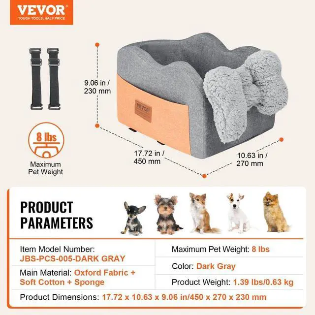 Max Pet Weight: 8 lbs,Color: Dark Gray,Item Model Number: JBS-PCS-005-DARK GRAY,Product Weight: 1.39 lbs/0.63kg,Product Dimensions: 17.72"x 10.63"x 9.06"/450 x 270 x 230 mm,Main Material: Oxford Fabric + Soft Cotton + Sponge
