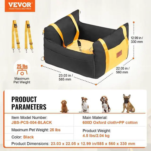 Color: Black,Item Model Number: JBS-PCS-004-BLACK,Product Weight: 4.5 lbs/2.04 kg,Maximum Pet Weight: 25 lbs,Product Dimensions: 23.03" x 22.05" x 12.99"/585 x 560 x 330 mm,Main Material: 600D Oxford Fabric + PP Cotton