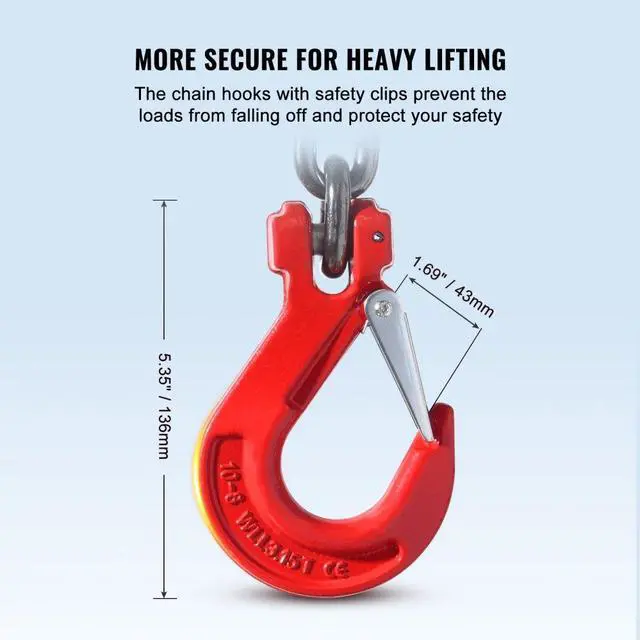 VEVOR 3/8" x 6' Chain Sling 2 Legs G80 Lifting Chain with Grab Hooks 11000 lbs