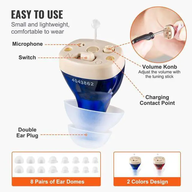 VEVOR Hearing Aids for Senior Rechargeable Hearing Amplifiers & 8 Pair Ear Domes