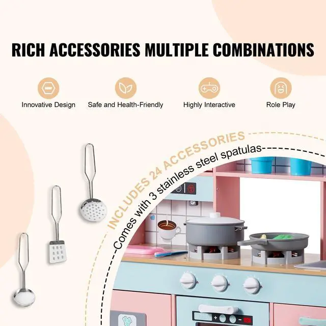 Christmas Gift! VEVOR Kitchen Playset Kids Pretend Cooking Play Toy 24 Piece Accessories Pink