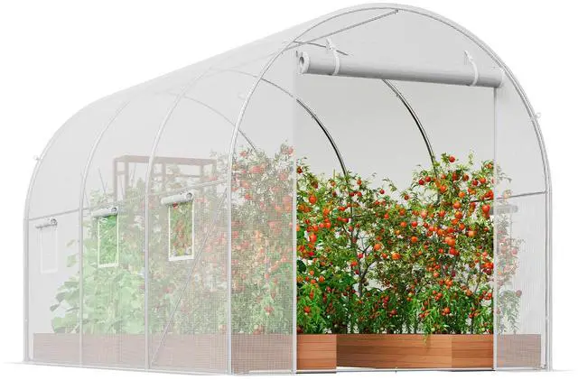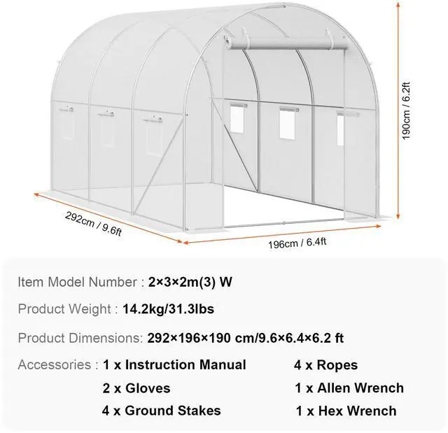 • VEVOR Walk-in Tunnel Greenhouse 9.58x6.43x6.23ft Galvanized Frame PE Cover White