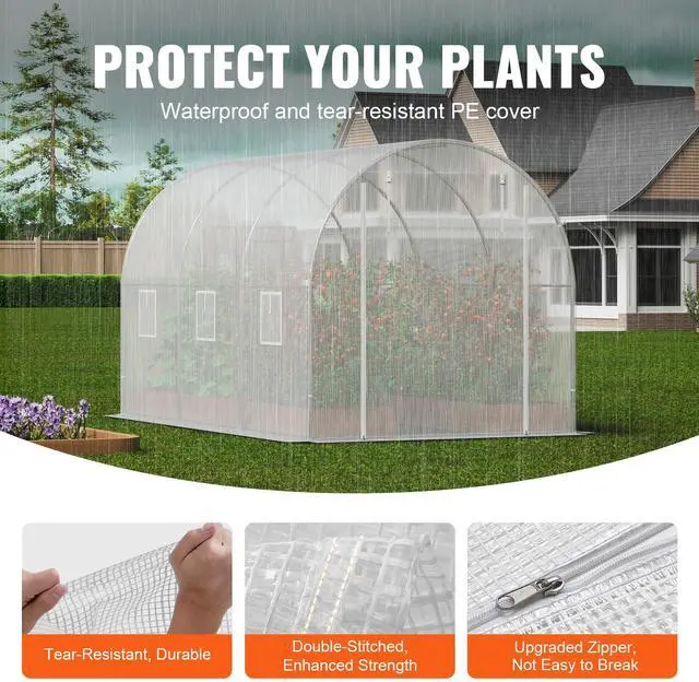 VEVOR Walk-in Tunnel Greenhouse 9.58x6.43x6.23ft Galvanized Frame PE Cover White