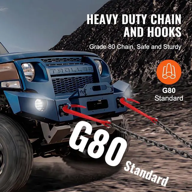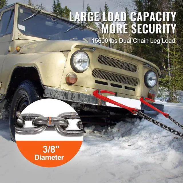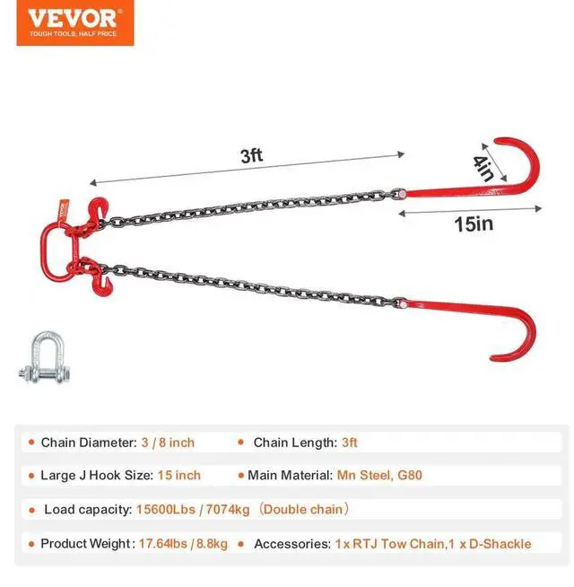 VEVOR 3/8" x 3' G80 Tow Chain J Hook V-Chain Bridle Grab Hook Wrecker 15600 lbs