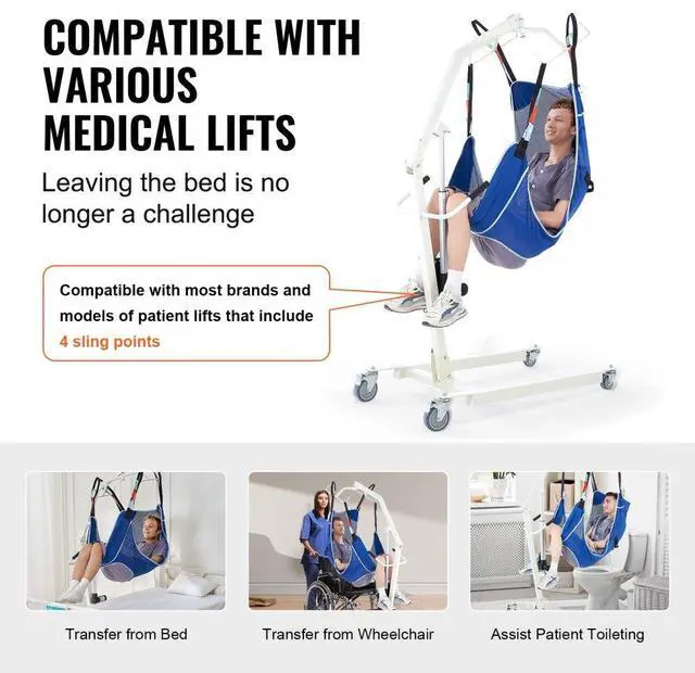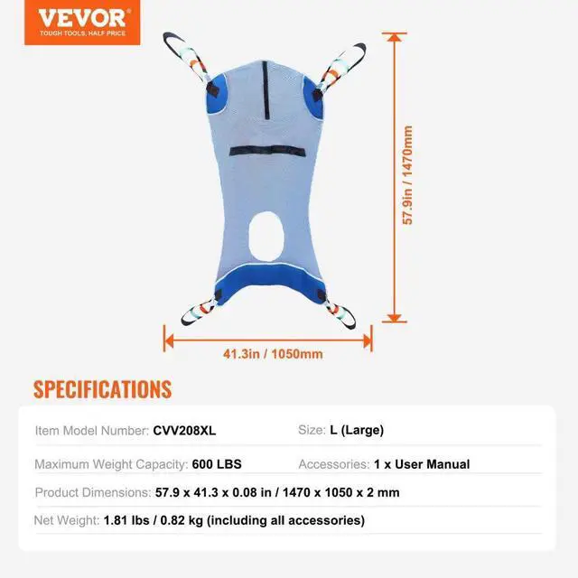 VEVOR Full Body Patient Lift Sling with Commode Opening Medical Aid Sling L-Size,147 x 105cm, 600LBS