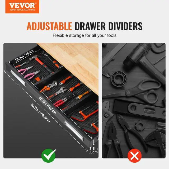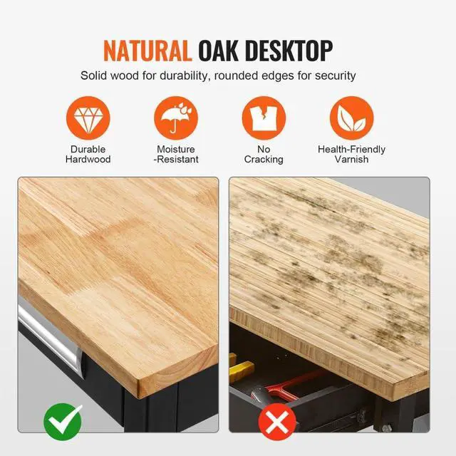 VEVOR 48" Workbench on Wheels Wood Top Work Table with Drawer Organizer 1500 lbs