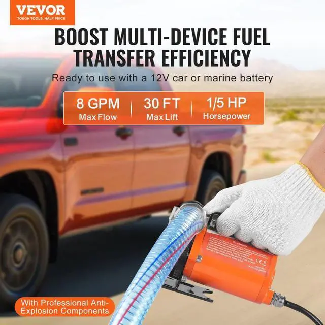 VEVOR Fuel Transfer Pump 12V 8 GPM 1/6 HP Diesel Pump with Auto Fuel Nozzle