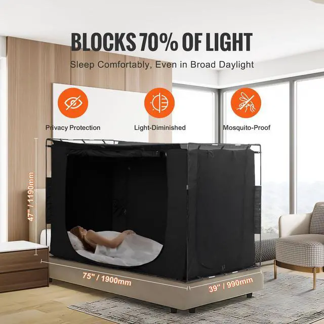 VEVOR 3 Doors Bed Tent Breathable Tent 70% Blackout with 0.37 in Fiber Poles