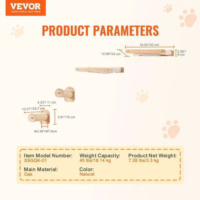 VEVOR Wall Mounted Cat Shelves with 2 Jumping Posts & 2 Hammocks up to 40 lbs