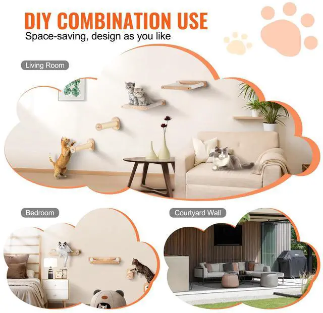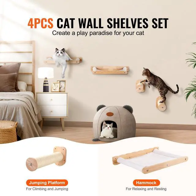 VEVOR Wall Mounted Cat Shelves with 2 Jumping Posts & 2 Hammocks up to 40 lbs