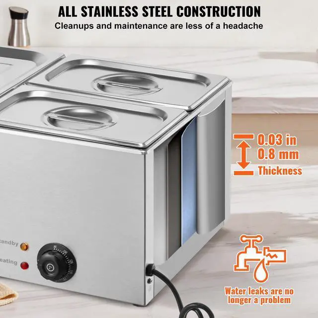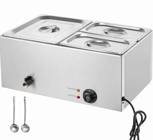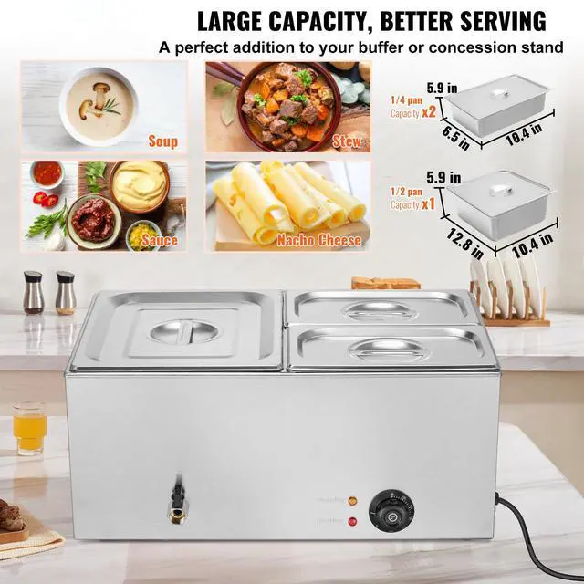 VEVOR Commercial Electric Food Warmer 3-Pan Countertop Buffet 17QT Bain Marie